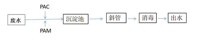 根据本项目污水的水质特点及我公司在类似污水处理工程中的实践经验,保证出水达到处理要求,确定工艺为:废水+PAC+沉淀池+新斜管+次氯酸钠消毒+出水。