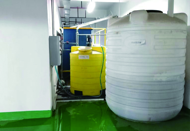 消毒设计采用次氯酸钠消毒,该方式具有使用方便,简单安全等特点,经消毒后的水再排入市政污水管道或附近水域。该池设计为钢制结构的箱体,集成到一体化污水处理设备内。