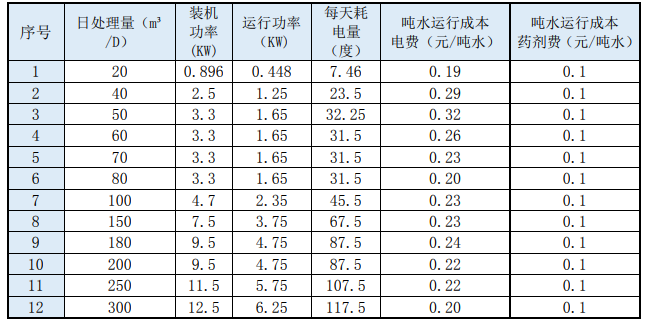 3、设备吨水运行成本统计: